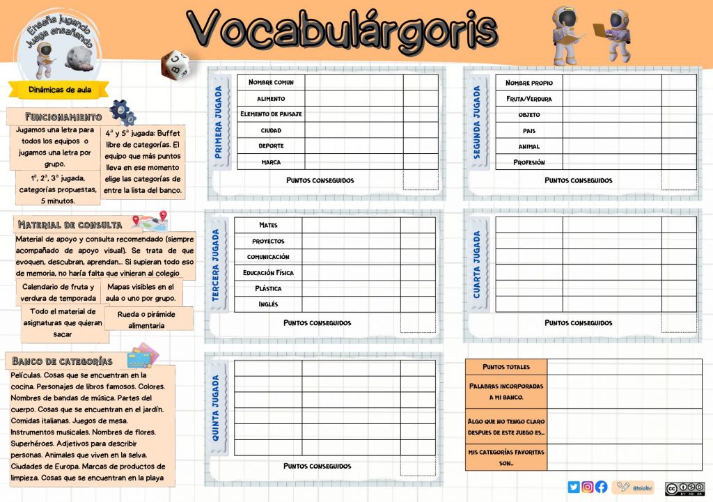 El desarrollo del vocabulario en los alumnos de primaria es fundamental para su éxito académico y personal. Ampliar el repertorio de palabras no solo mejora la capacidad de expresión, sino que también enriquece la comprensión lectora, facilita el aprendizaje en otras áreas del conocimiento y fortalece el pensamiento crítico. Una forma efectiva y divertida de potenciar este aprendizaje es a través de juegos como Vocabulárgoris. Este juego invita a los niños a explorar y descubrir palabras que comiencen con una letra específica del abecedario en distintas categorías, como animales, objetos o profesiones. Esta dinámica, además de estimular la creatividad, favorece la memoria y la asociación de conceptos, convirtiendo el aprendizaje en un proceso activo y participativo. Al jugar, los alumnos no solo se divierten, sino que también refuerzan su vocabulario de manera natural y progresiva, lo que contribuye a un desarrollo lingüístico más sólido y seguro, esencial para enfrentar con éxito los retos futuros en su educación.