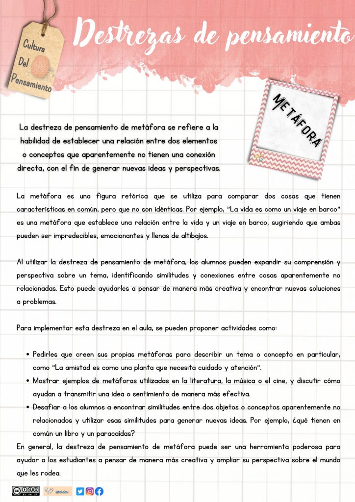 (Visited 334 times, 1 visits today)Compartir: Haz clic para compartir en Facebook (Se abre en una ventana nueva) Facebook Haz clic para compartir en X (Se abre en una ventana nueva) X Más Haz clic para compartir en Threads (Se abre en una ventana nueva) Threads Haz clic para compartir en WhatsApp (Se abre en una ventana nueva) WhatsApp Haz clic para compartir en Bluesky (Se abre en una ventana nueva) Bluesky Publicaciones relacionadas: Destrezas de pensamiento. Secuenciación Destrezas de pensamiento. Prever consecuencias. Destrezas de pensamiento. Argumentación Destrezas de pensamiento. Fiabilidad de fuentes Etiquetas: conectar, cultura del pensamiento, destrezas de pensamiento, imaginación Leer más artículos Entrada anteriorDestrezas de pensamiento. Argumentación Siguiente entradaDestrezas de pensamiento. Fiabilidad de fuentes