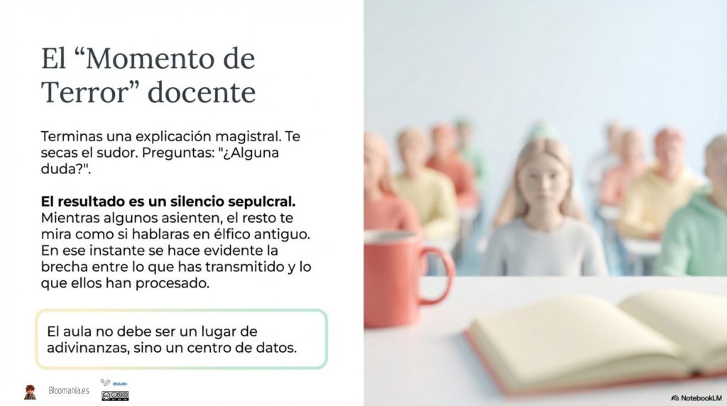 Truco de supervivencia docente: Si ves que de repente se encienden tres o cuatro luces rojas a la vez en distintos puntos de la clase… ¡PARA EL CARRO! Haz un «tiempo muerto». Reagrupa a esos alumnos o vuelve a la pizarra. Si cuatro personas se han perdido en el mismo sitio, el problema no son ellos, es que el camino tiene un bache que no vimos venir.