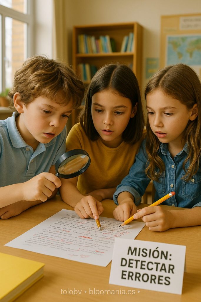 “Misión: detectar errores” es una propuesta de juego cooperativo que convierte la revisión de errores en una experiencia activa, colectiva y libre de juicio. Se trata de una dinámica en la que el alumnado se enfrenta a tareas con fallos intencionados —problemas mal resueltos, textos con incoherencias, cálculos mal planteados, etc.— con un objetivo claro: detectar los errores, analizarlos en equipo y reconstruir el conocimiento a partir de ellos.